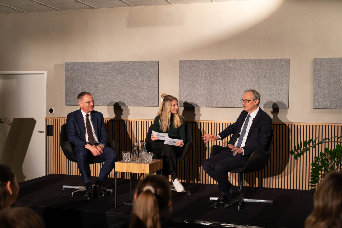 Im Linzer Rotax MAX Dome diskutierte Stelzer gemeinsam mit E-Control-Vorstand Wolfgang Urbantschitsch und rund 70 Teilnehmerinnen und Teilnehmern über aktuelle energiepolitische Herausforderungen. Neben der Energiepreissituation standen auch strukturelle Standortfragen im Fokus.