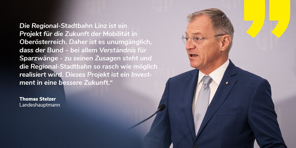 „Die Regional-Stadtbahn Linz ist nicht nur ein zentrales Zukunftsprojekt für den Zentralraum, sondern für ganz Oberösterreich. Sie ist eminent wichtig, sie macht den Bildungs- und Wissenschaftsstandort Oberösterreich durch die direkte Anbindung der Johannes Kepler Universität und der Interdisciplinary Transformation University, kurz IT:U, sowie in weiterer Folge auch der FH Hagenberg noch attraktiver" so unser Landeshauptmann Thomas Stelzer.