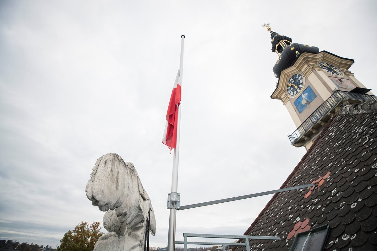 Oberösterreich steht Wien solidarisch zur Seite. Landeshauptmann Thomas Stelzer hat veranlasst, dass beim Linzer Landhaus die Landesfarben am Dachgiebel auf Halbmast gesetzt werden und zusätzlich eine schwarze Fahne gehisst wird.