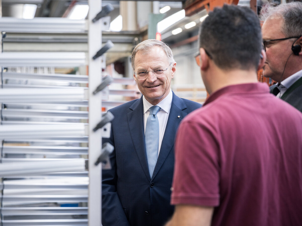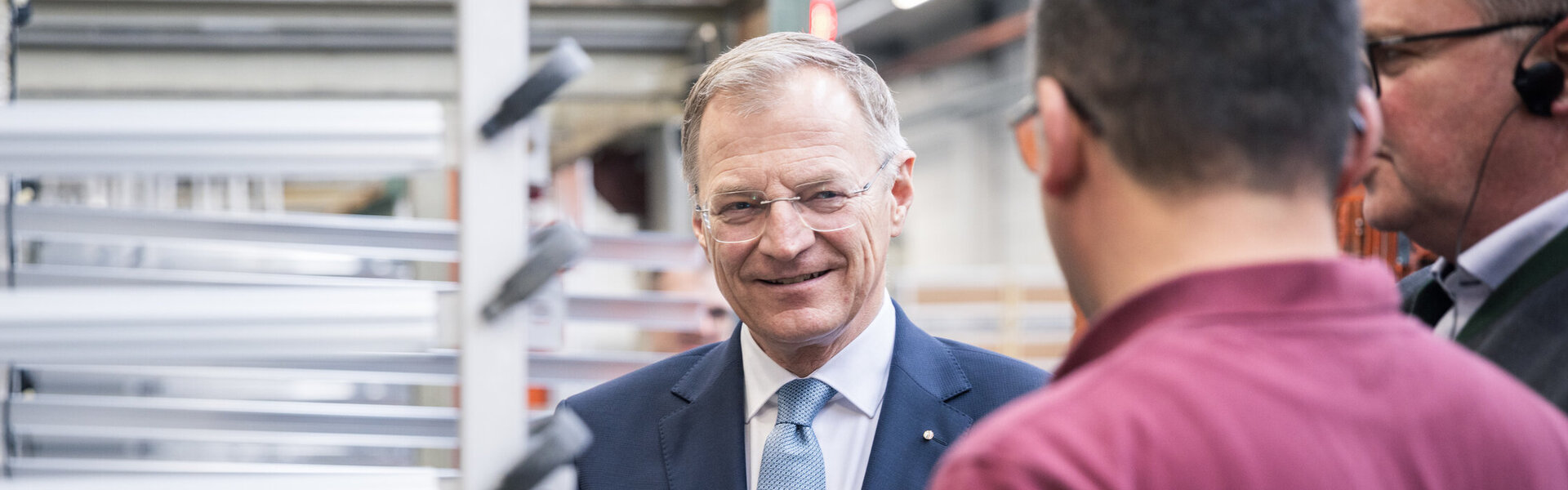 Die Piesslinger GmbH hat sich national und international als renommierter Spezialist für die Veredelung von Aluminium positioniert. Die Kernkompetenzen betreffen Eloxal- und Pulverbeschichtung, den Werkzeugbau, die Bearbeitung von Alukomponenten und auch deren Logistik. Das 1553 gegründete Unternehmen ist seit mehr als 460 Jahren in der 11. Generation in Familienbesitz und baut daher auf den Grundpfeilern von Tradition – Innovation – Emotion seine Geschäftstätigkeit auf und beschäftigt aktuell am Standort in Molln und Kapfenberg rund 400 Mitarbeiterinnen und Mitarbeiter. Prestigeträchtige Projekte wie etwa der weltbekannte Tennisclub in Wimbledon oder der Marienturm in Frankfurt am Main zählen zu den Vorzeigeprojekten des Unternehmens. „Es sind Familienbetriebe wie dieser, die das Rückgrat unserer Wirtschaft bilden und Oberösterreich an der Spitze der Republik etabliert haben“, bekräftigt Stelzer.